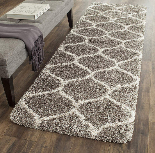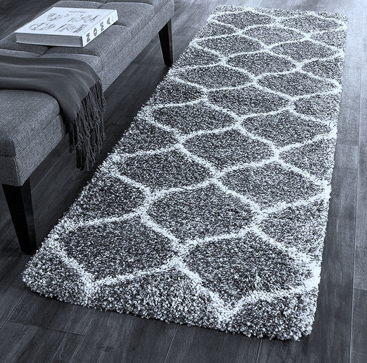 Premium Grey and Ivory Moroccan Style Extra Soft Microfiber Bedside Runner - Soft Feel, Anti-Skid Rubber Backing