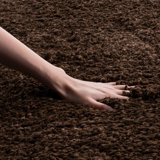 Coffee Plain Premium Microfiber Round Shaggy Rug – Soft Touch & Anti-Skid Rubber Backing