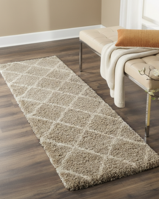 Ivory & Beige Bedside Runner – Soft Microfiber, Anti-Skid Rubber Backing