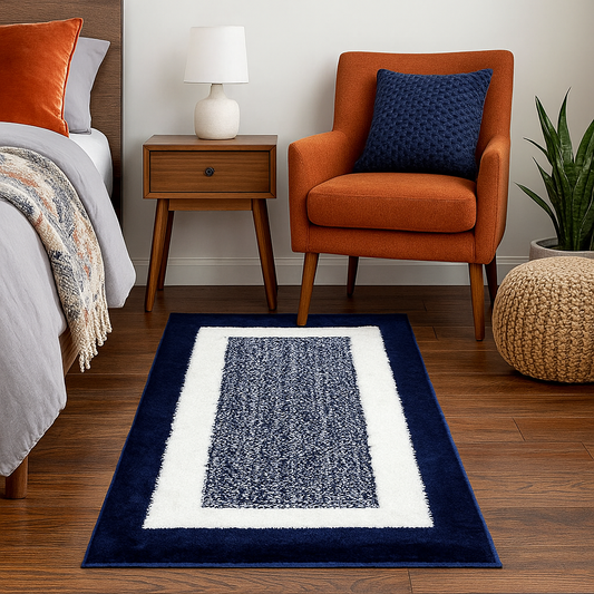 Navy Blue Plain Premium Shaggy Bedside Runner - Soft Feel, Anti-Skid Rubber Backing