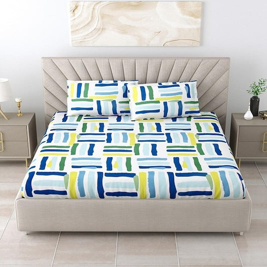 Kashyapa Rugs Premium Cotton Multi Colours Sticks Fitted Bedsheet – Double Bed Size with 2 Pillow Covers