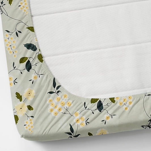 Kashyapa Rugs- Premium Glace Cotton 🦋 Butterfly Design 🐝 Fitted Bedsheet – Double Bed Size with 2 Pillow Covers