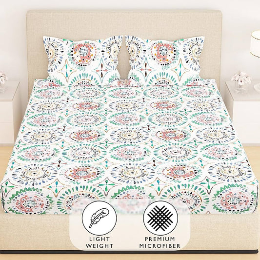Kashyapa Rugs Premium Cotton Bindi Design Fitted Bedsheet – Double Bed Size with 2 Pillow Covers
