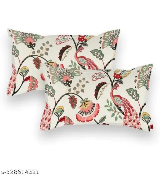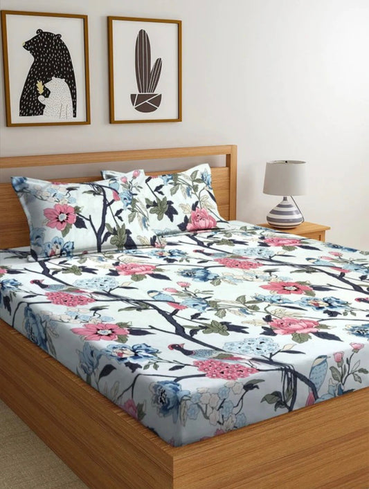 Kashyapa Rugs Premium Glace Cotton 🌴Tree Birds🦃 Fitted Bedsheet – Double Bed Size with 2 Pillow Covers
