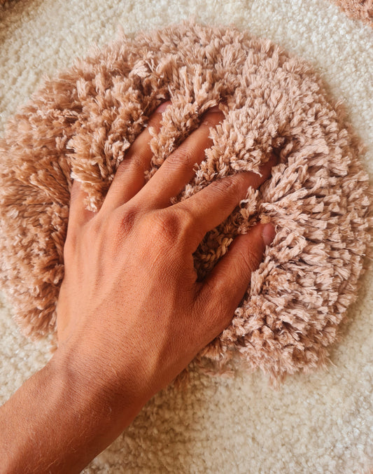 Premium Ivory and Beige Fluffy Round Carpet – Soft Touch & Anti-Skid Base