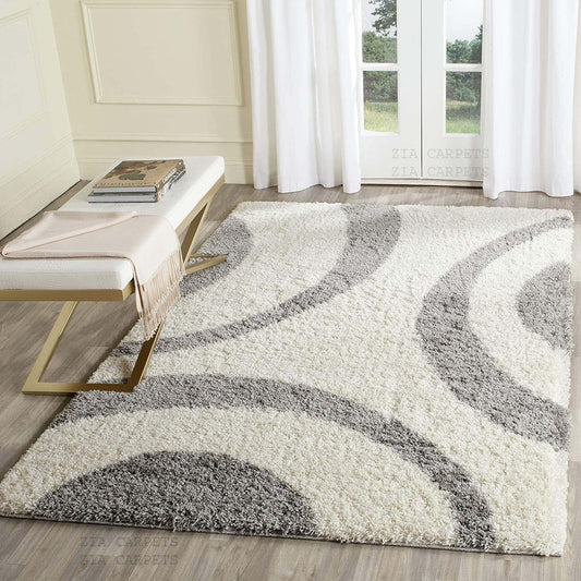 Ivory & Grey Shaggy Hand-Tufted Microfiber Carpet – Soft Touch with Anti-Skid Rubber Backing