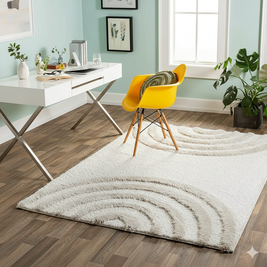 Beige and Ivory Extra Soft Luxury Fluffy Area Rug – Ideal for Living Room, Bedroom, Childroom & Hall – Soft Touch & Anti-Skid Backing