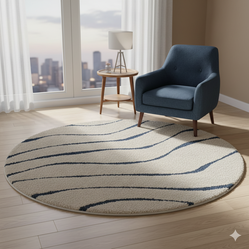 Elegant Ivory & Blue Soft Shaggy Round Carpet – Key Features