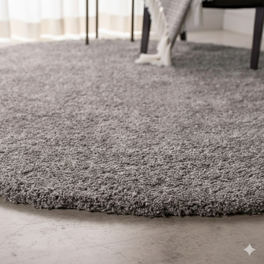 Premium Plain Grey Round Shaggy Carpet – Key Features